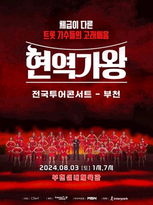 부천을 시작으로 현역가왕 콘서트는 강릉, 안동, 진주, 대전으로 콘서트를 진행한다고하니 알아두셨다가 콘서트 티켓 신청하세요!