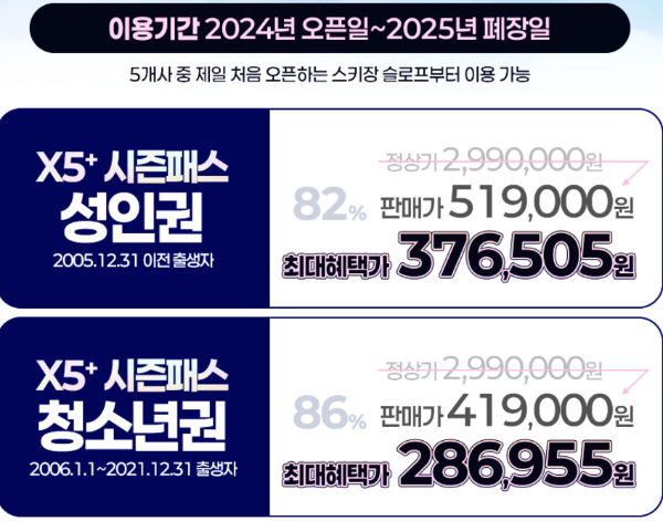 스키 시즌 오픈과 함께 특별 할인 티켓도 판매됩니다. 시즌 패스 구매 시 더욱 많은 혜택을 받을 수 있으니, 미리 예약하는 것을 추천드립니다.